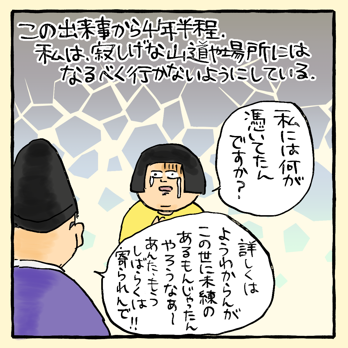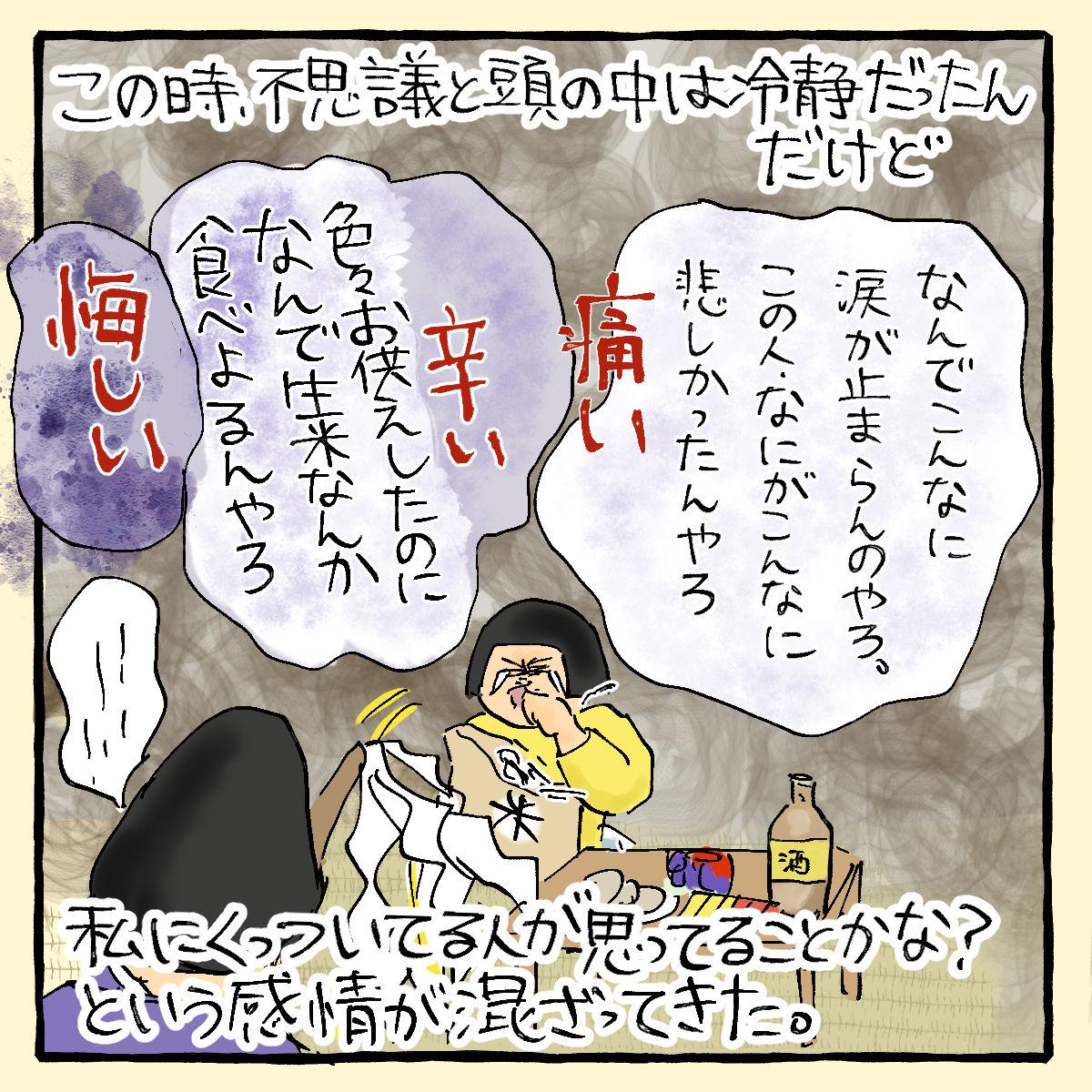 わたしの冷静な気持ちと、(多分)私にくっついてたのかな???の人の気持ちが混じりあって頭がゴチャゴチャになっていたところ……