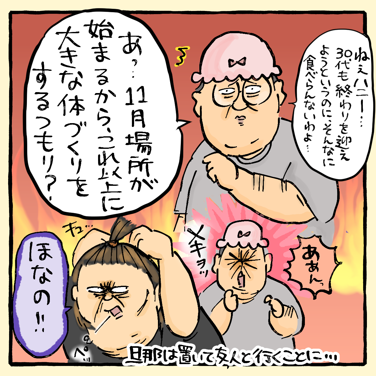 私も旦那も出会ってからお互いプクプク太り続けて、旦那は+20キロ、私は+15キロです( *´艸`)