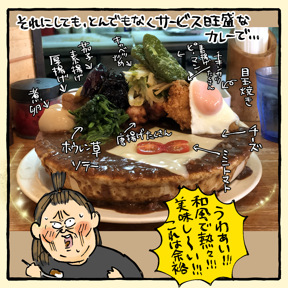 大盛もさることながら、熱々カレー死にそう!すげい!