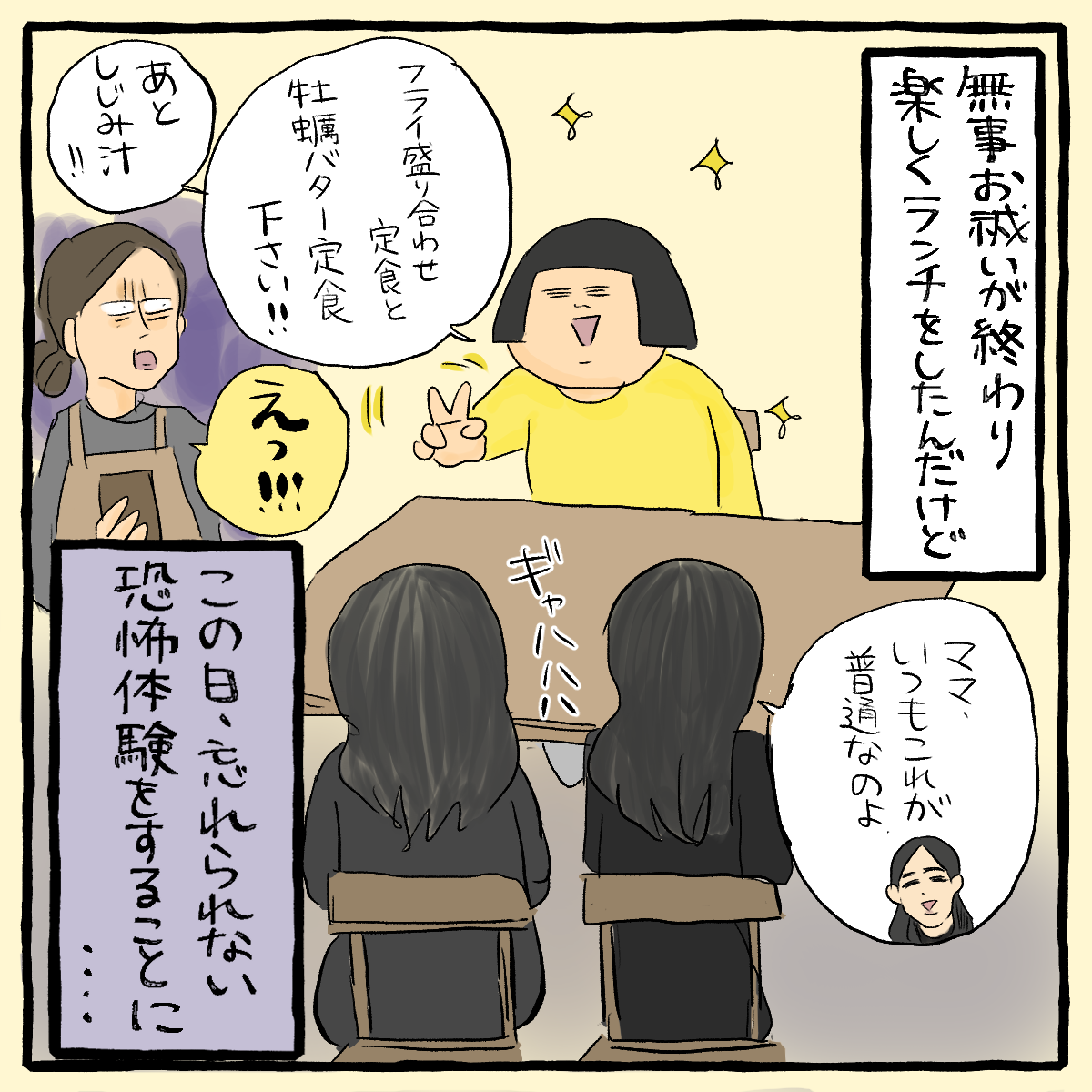 怖いとか続きが気になる以前にカキバター定食が気になって、なに?カキバターってムニエルなの?