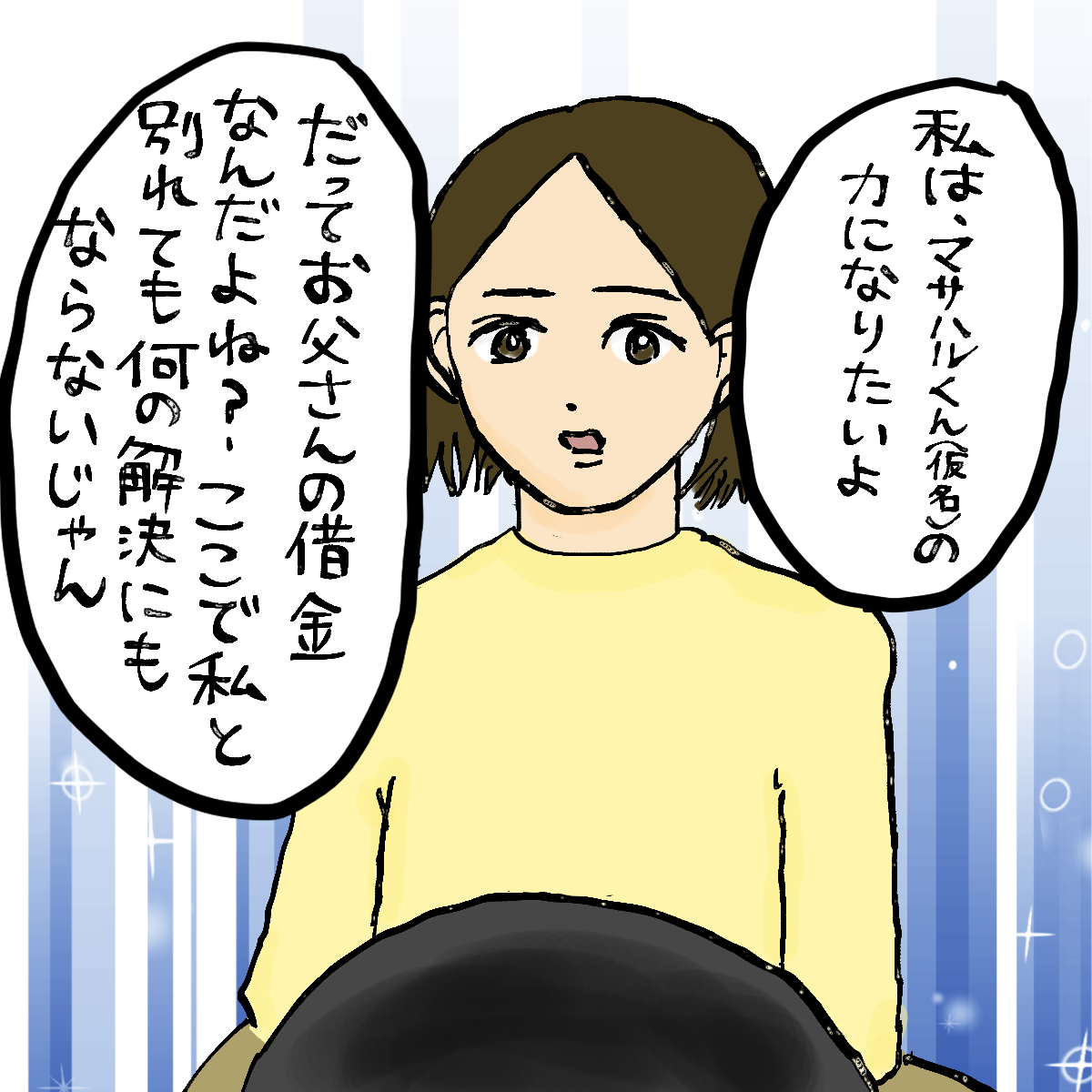 今更ですが、この相手の男は顔写真を見せてもらったところ福山雅治にまあまあ似てたのでマサハル(仮)にしました。