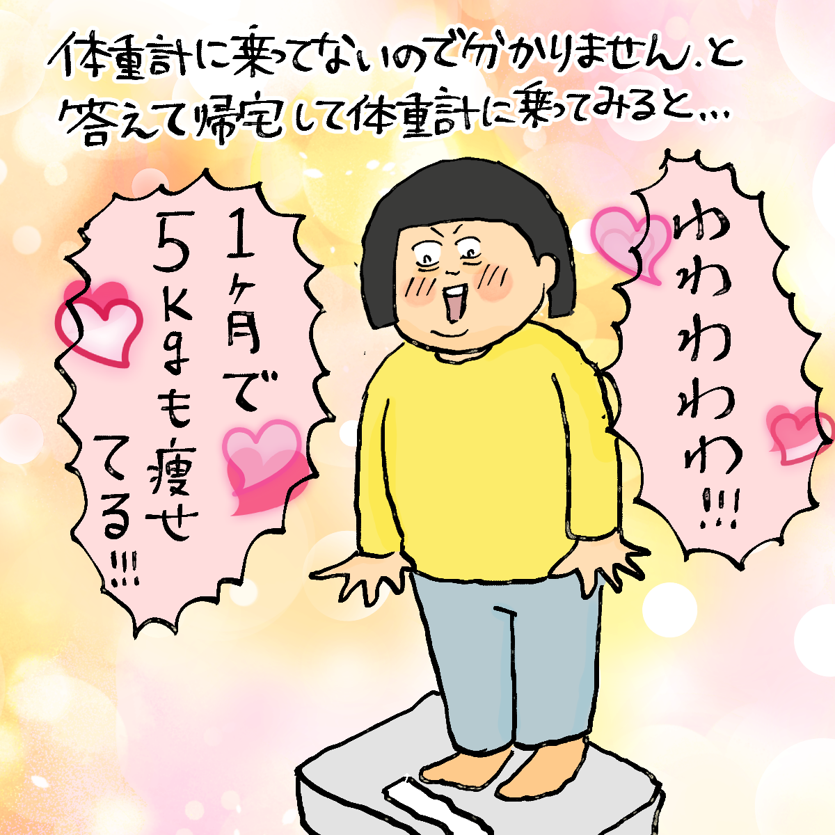 乗ってないからわかんないよ……と思いながら帰宅し、体重計に乗ると……!!!!