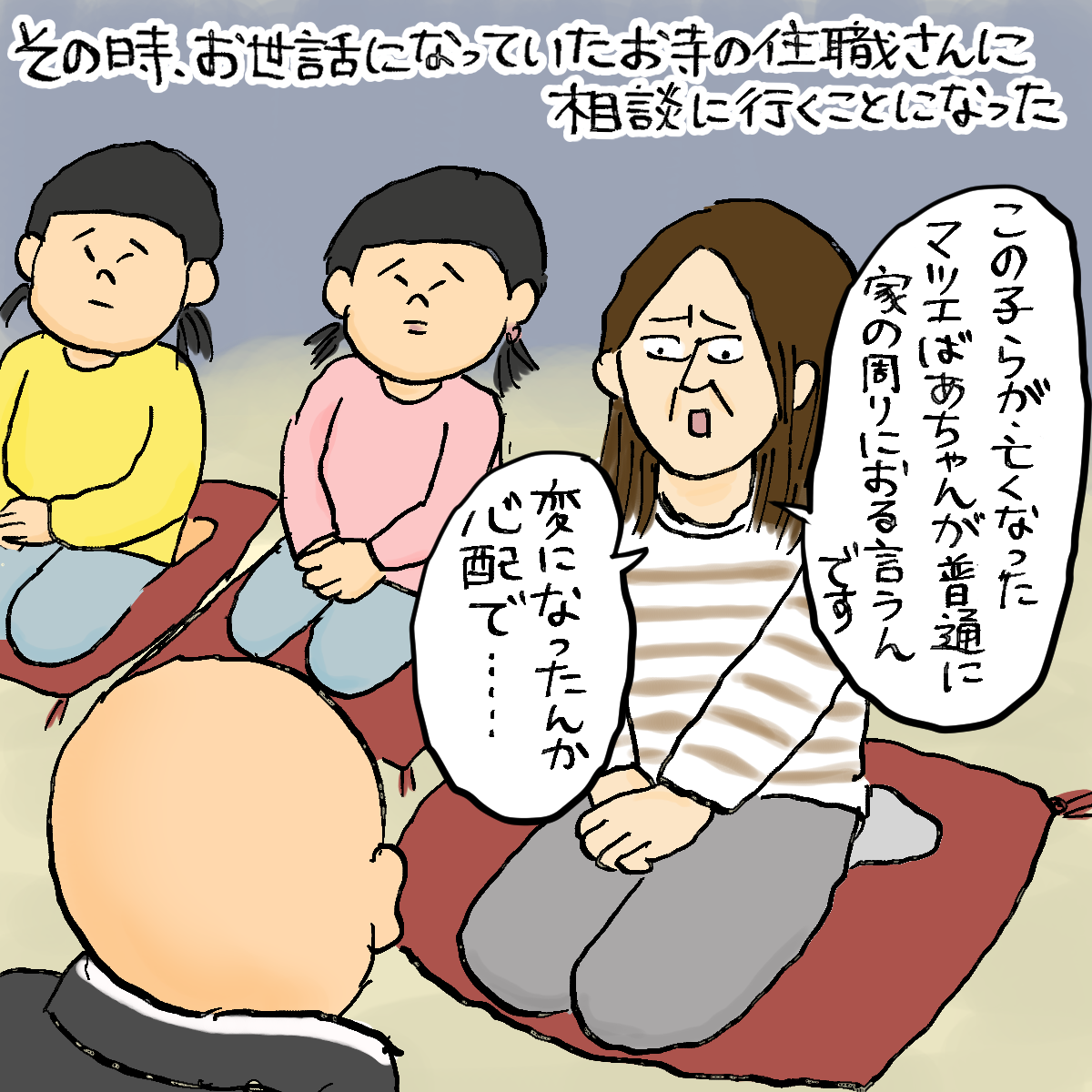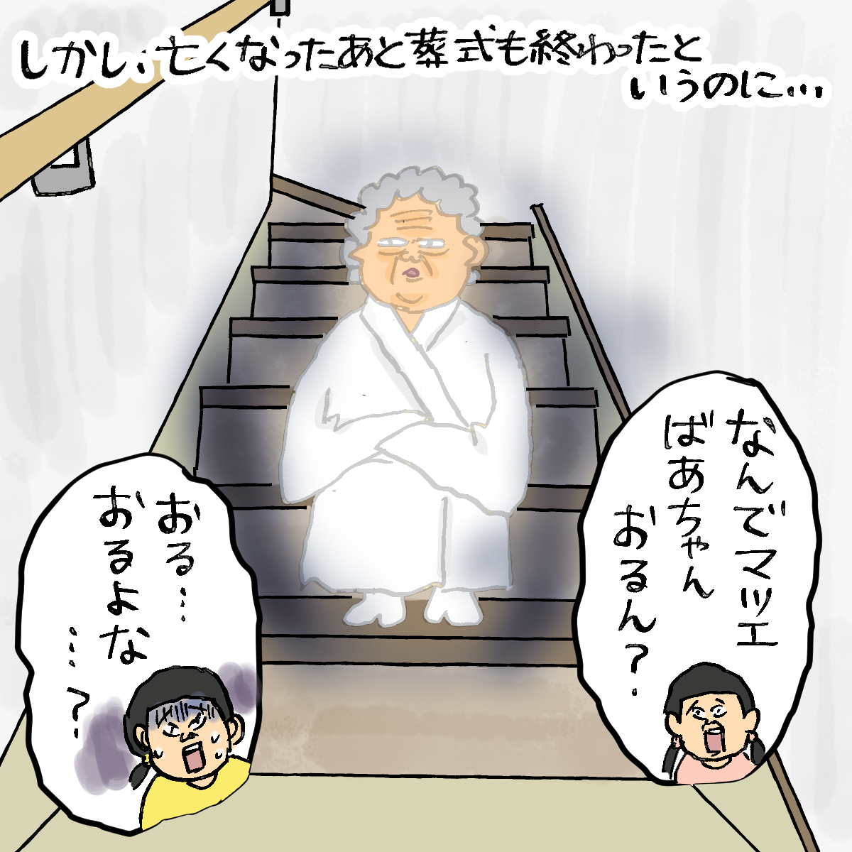 私もひいおばあちゃんのお葬式の時に、階段の下でおばあちゃん、と言っていたらしいですw