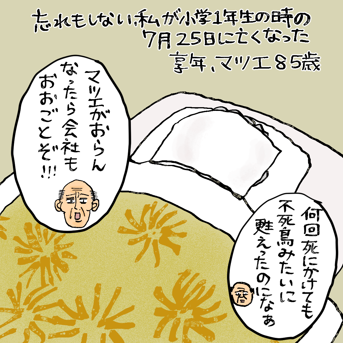 マツエさんの活躍素晴らしい。影の薄い曾祖父さん、小さいコマなのに顔が良いのうまいぜ。