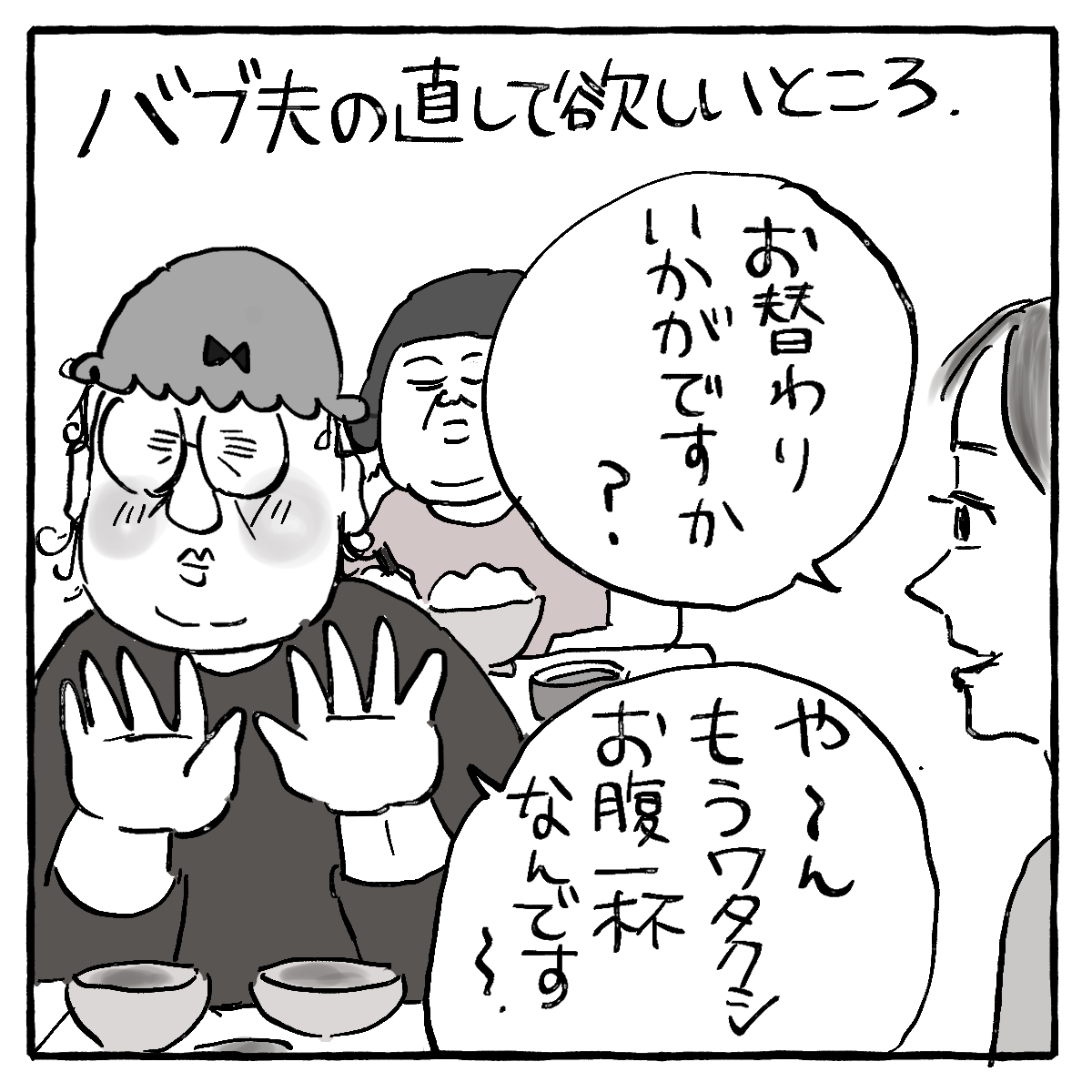 まず、定食屋さんやなんかでもおかわりを勧められたら必ず断る。