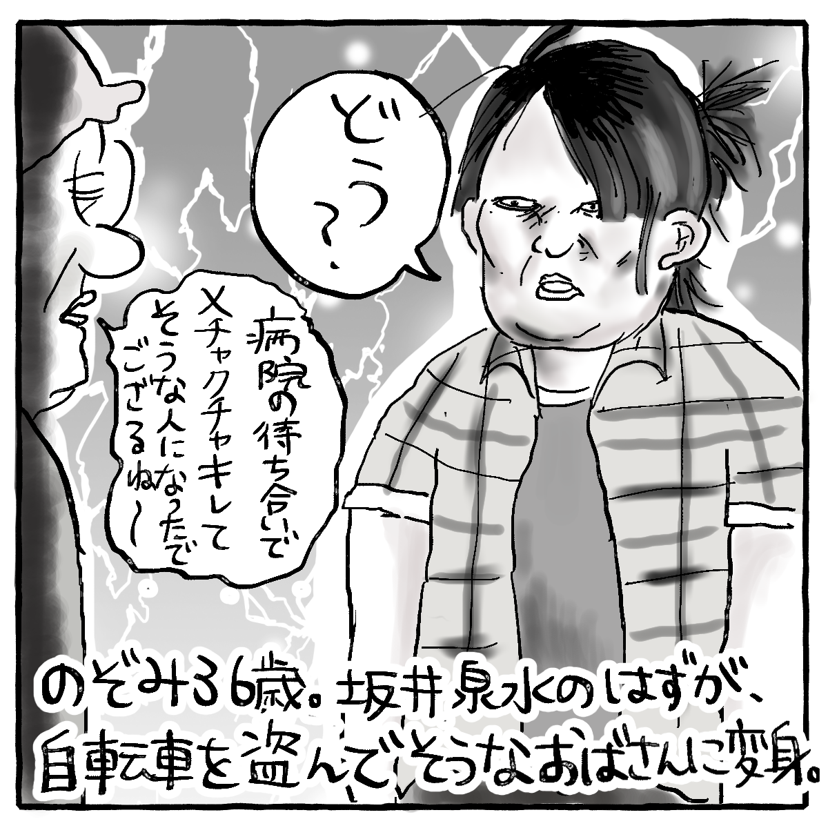 病院の待合室に1人はいる感じと、自転車盗み出しそうな感じが絵から滲み出てます!(褒め言葉❤️)笑