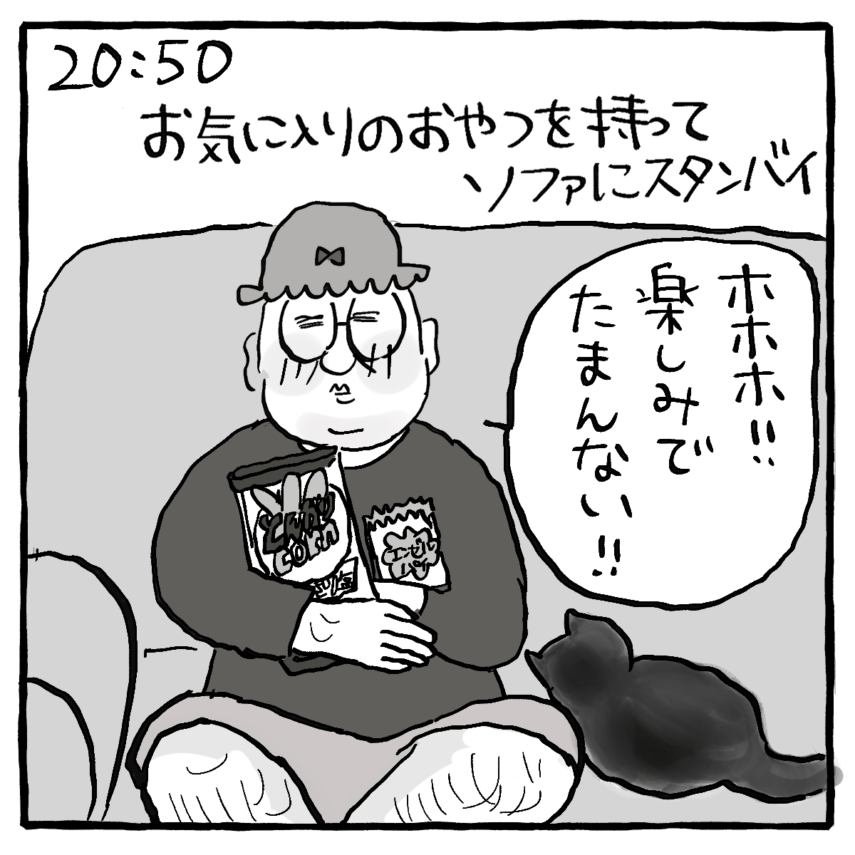 甘いのとしょっぱいお菓子を抱え込んでスタンバイ。