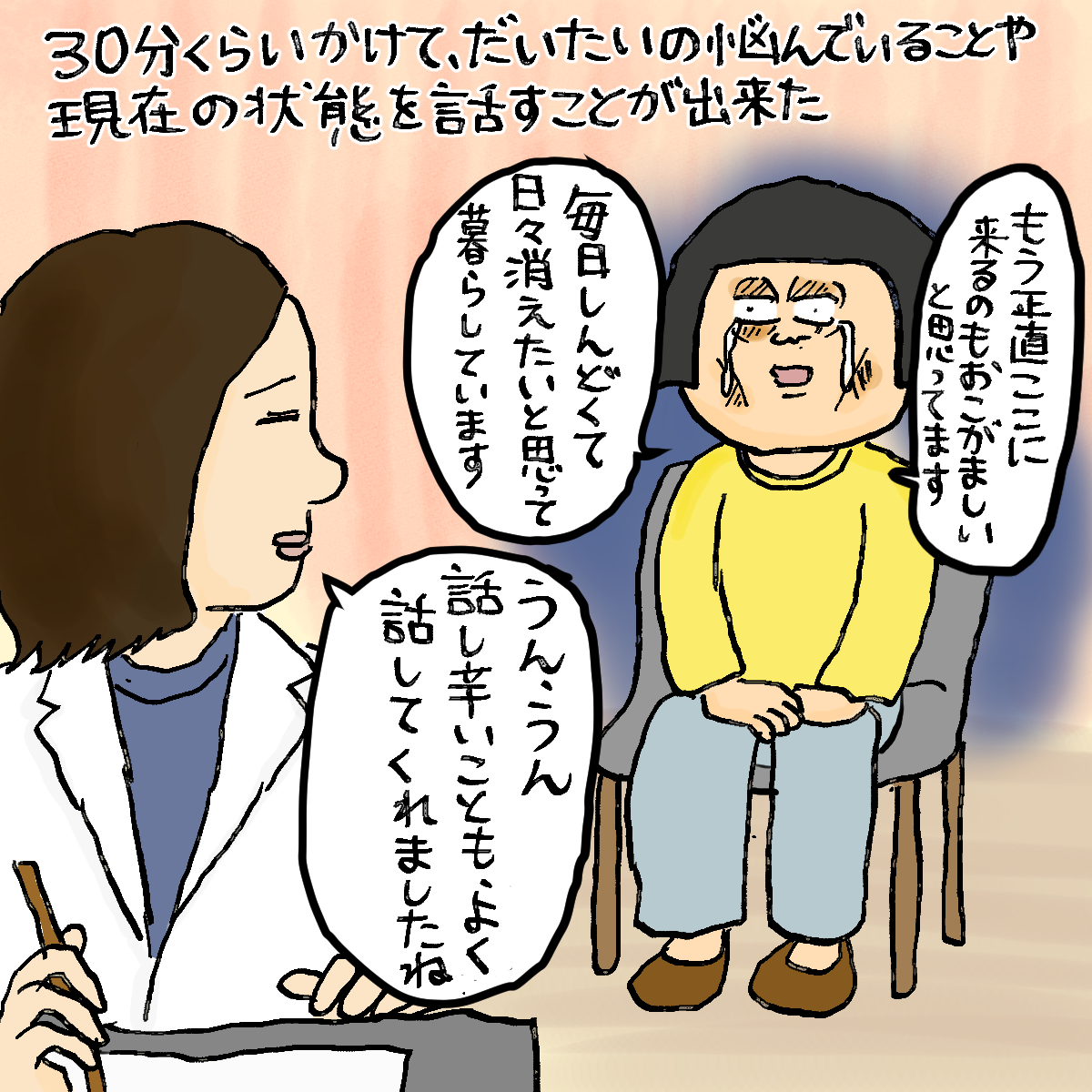 良からぬことばかり考えていたら、親友がきてくれ、病院へ行くことができました。