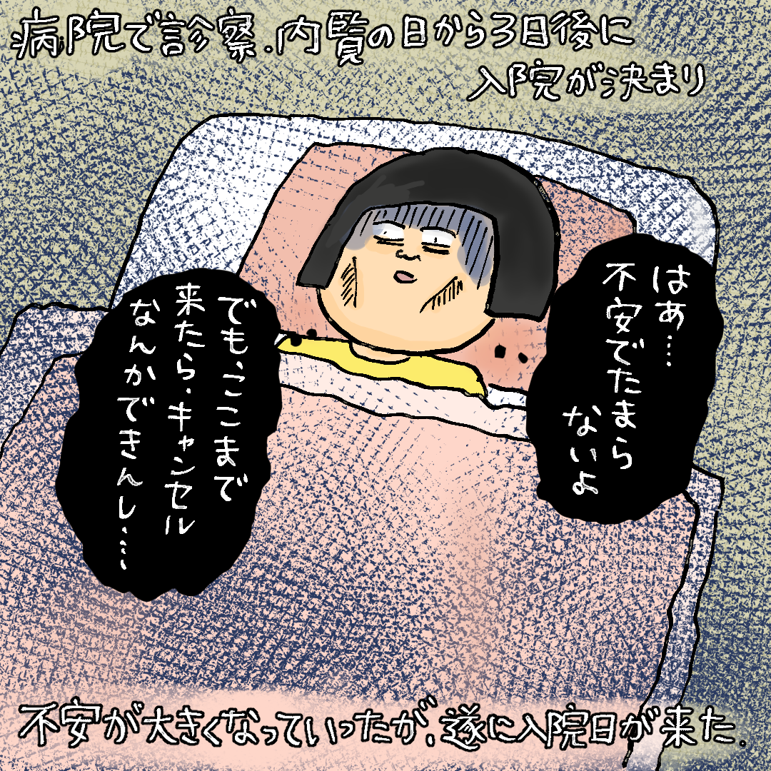 遂に三日後に入院が決まったんだけど、私の心の中はザワザワして恐ろしい気持ちでいっぱいになってしまっていた。