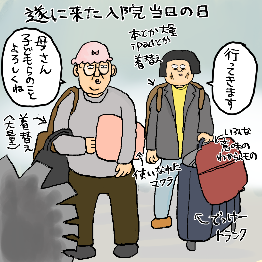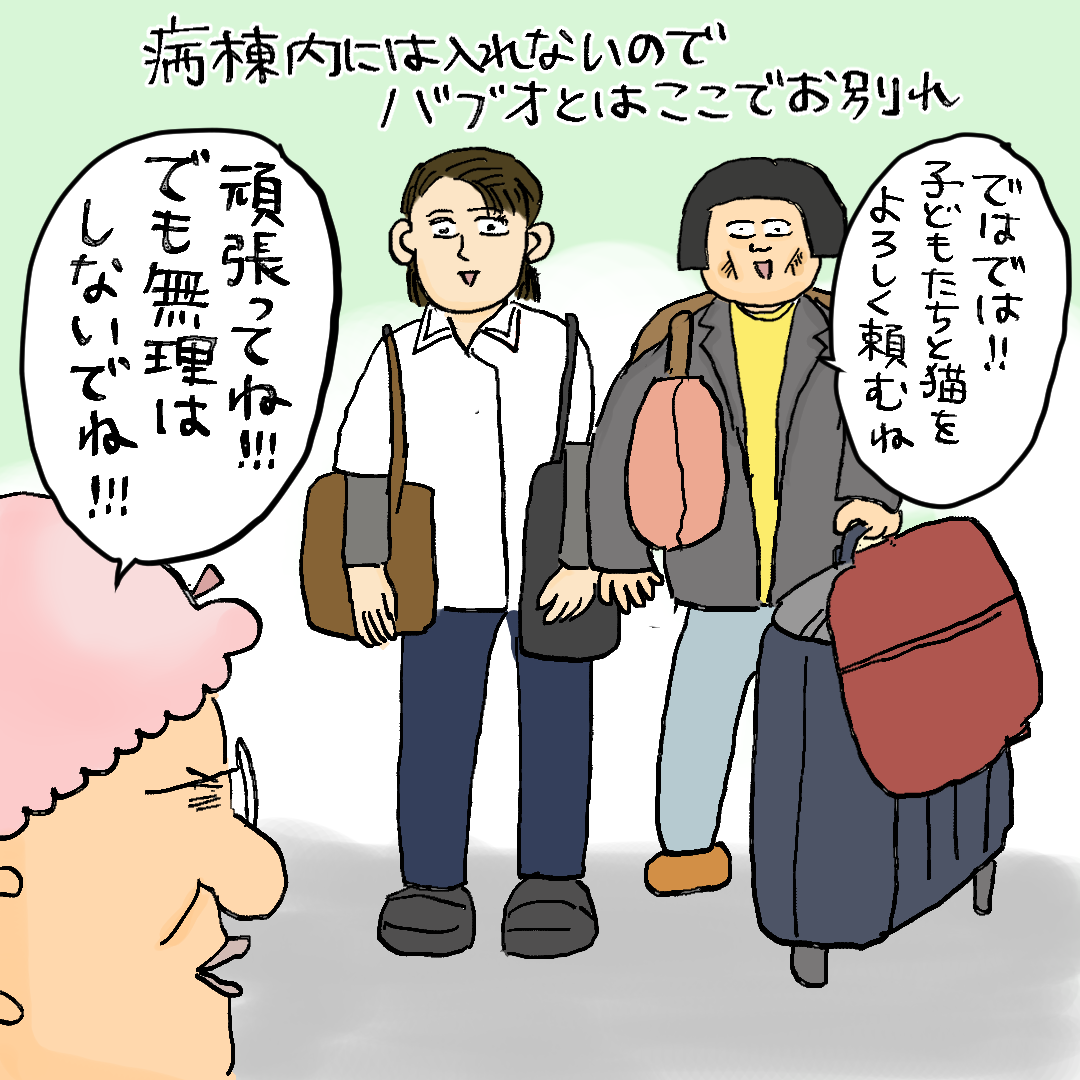出張だらけでほぼ家にいないバブオに対して、一応念押ししてから入院。