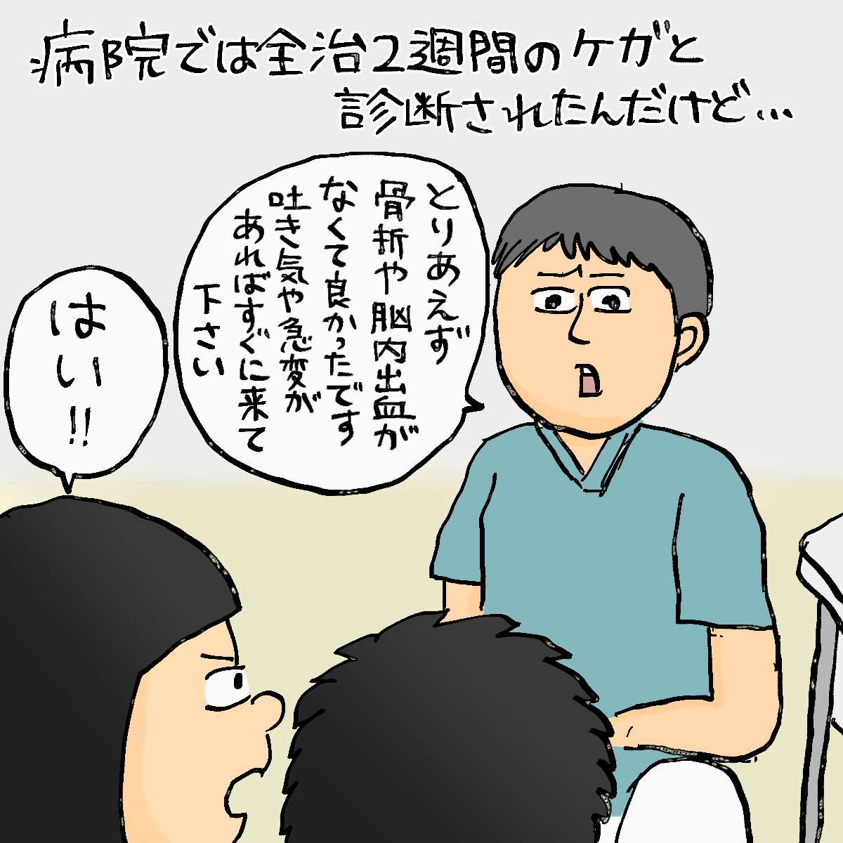 いろんな検査の結果、全治2週間程のけがであろうとのこと。
