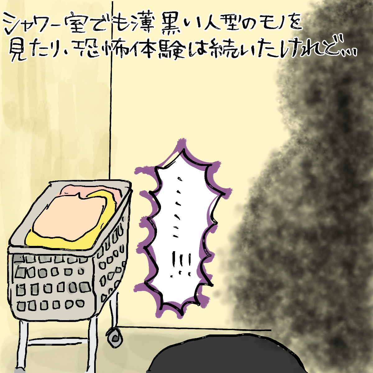 シャワーをあがった後にものすごく大きな人影のような黒い物体がいたり(私が呆然としていたら外にスーーーッと出ていった)