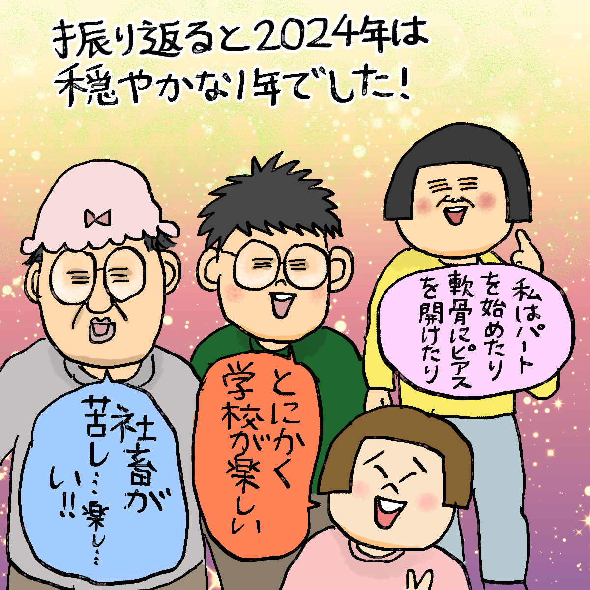 本当に2024年は、何事もなく幸せな年でした。息子の中学受験も無事終わり、ほっと一息ついた年でありました。