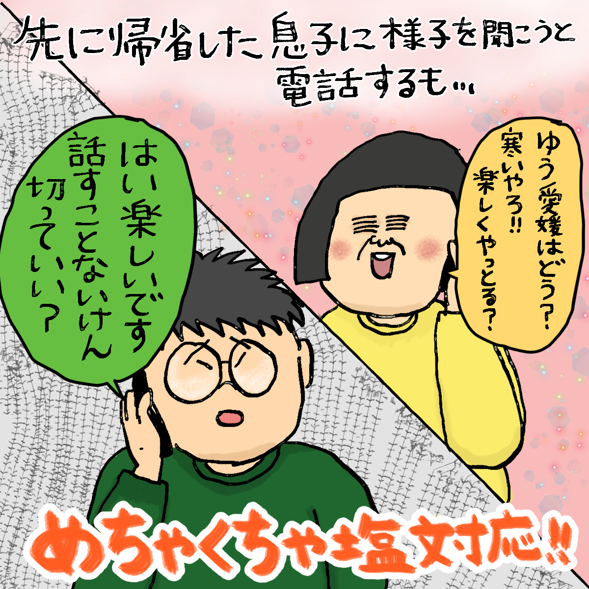 ほんっと毎回そうなんだけど、帰省中電話かけるとめちゃくちゃ塩対応!!