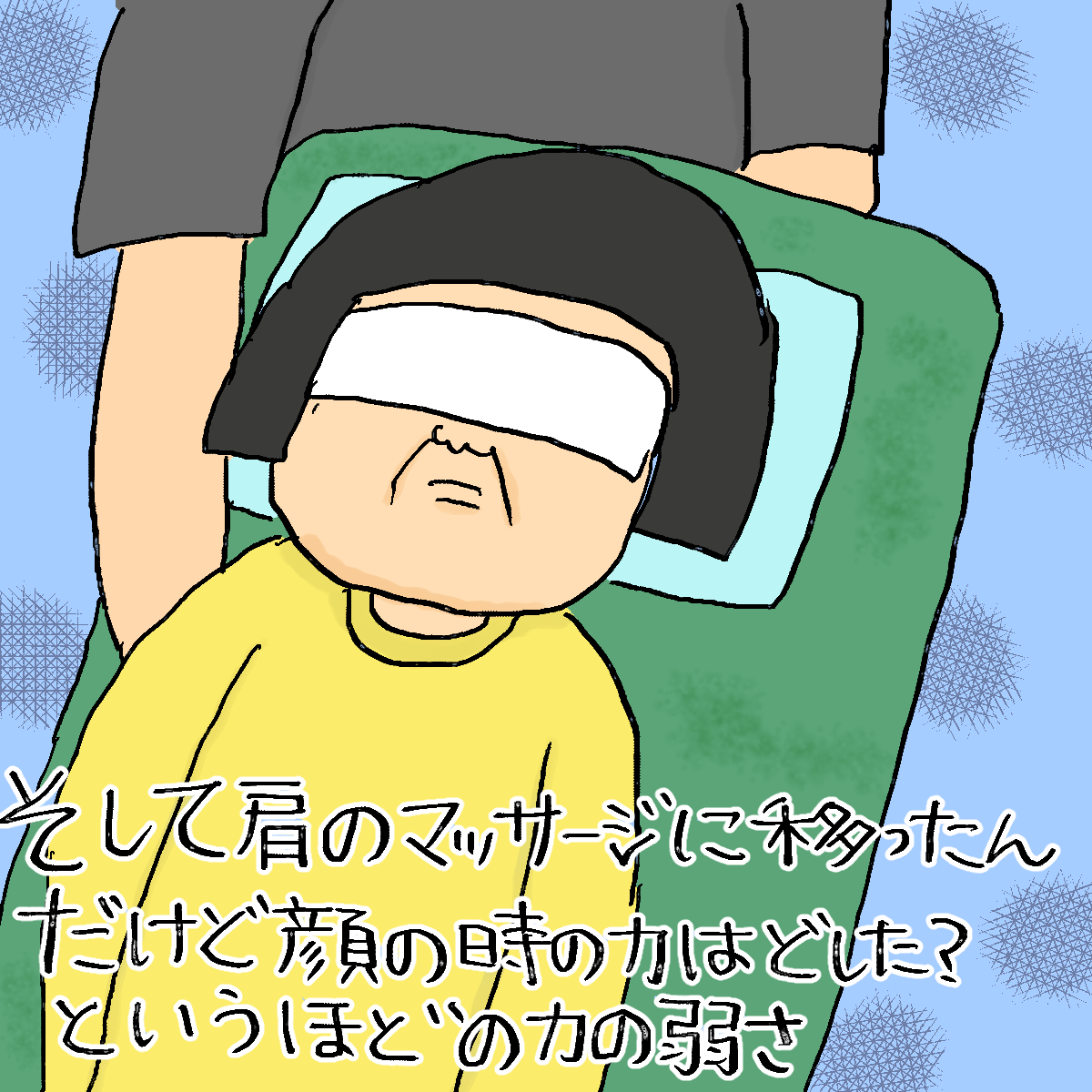肩のマッサージで力を入れなかったのは、マッサージの方法を知らないから下手に力を入れて筋とか痛めたら責任取れないと考えたからとしか思えません・・・。