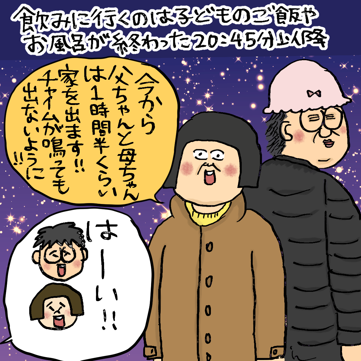 産後初めて2人で居酒屋デビュー。子どももお留守番任せられるようになったな、と成長にしみじみ。