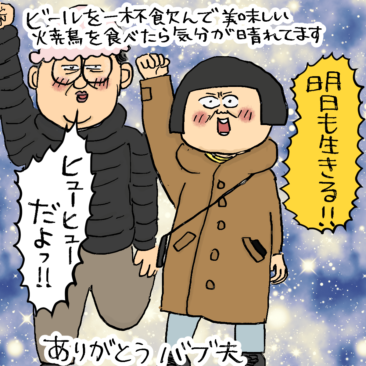 だけど、ビールを1杯(たくさんって意味じゃないよ。ワンカップって意味よ!)飲んで美味しくて安い焼き鳥を食べたら元気が出てくる!