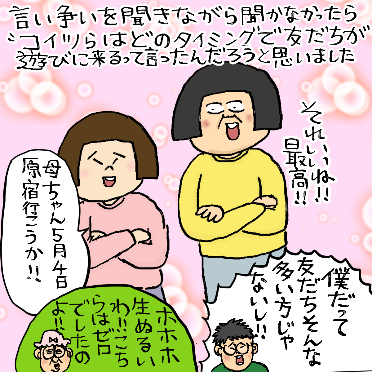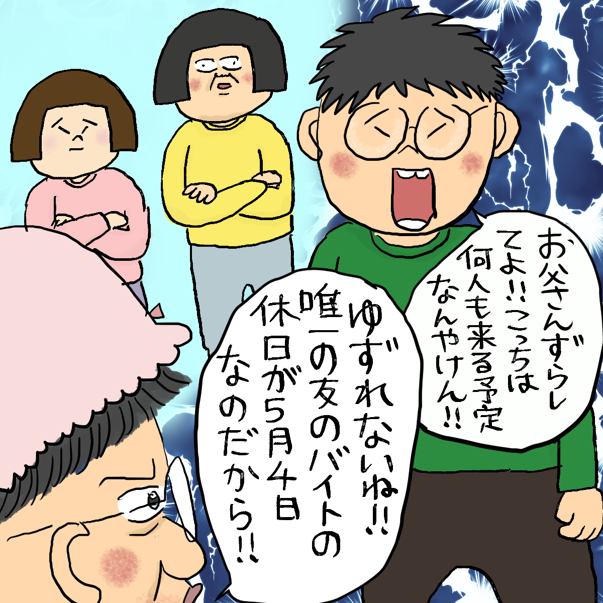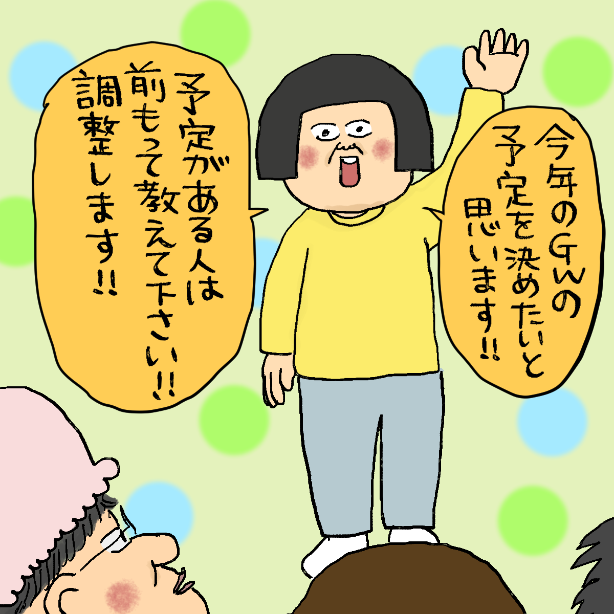 今回のGW予定バッティング事件はどうなるのか本人たちに任せたいと思いますが、【これからは予定が決まったら早く言うてくれよ?!】とめちゃくちゃ念押ししときました。