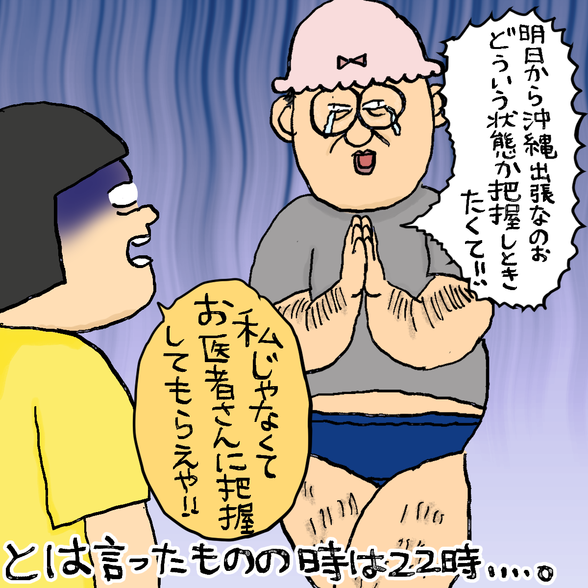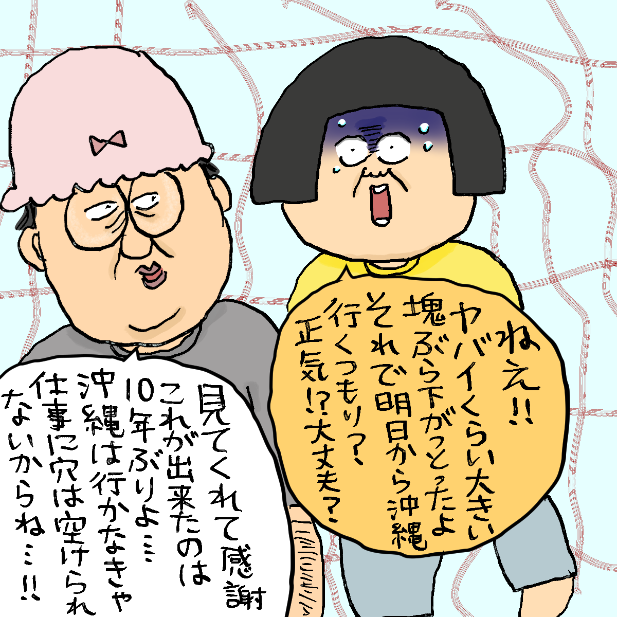 仕事も休まず無理矢理あのでっかい爆弾を抱えて沖縄に向かったバブ夫。