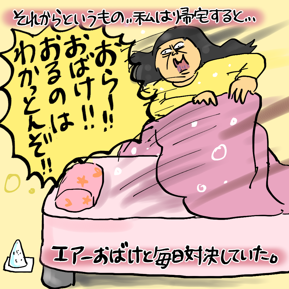 この、突然布団の中にいる(ハズと思い込んでる)おばけと対決するクセはなかなか抜けず、未だにちょっとモッコリ膨らんだ布団とかあると叩きたくなってしまう。