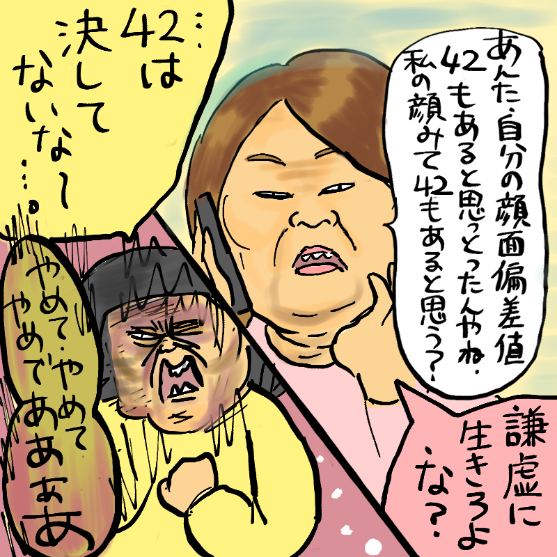 でも、よーく思い出してみたら「顔面偏差値43の漫画家大盛のぞみです!」