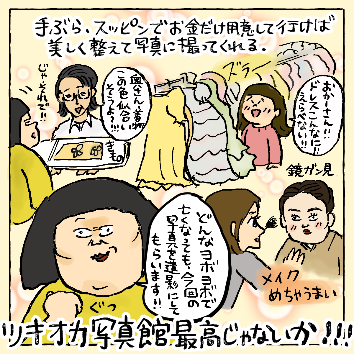 (最後になったけど、絵に描いてる写真館での登場人物は、全員撮影の時以外はマスクをしておりました!漫画のためにマスクなしで描いてるだけで、感染症対策はキチンとされてたので心配されないでね!)