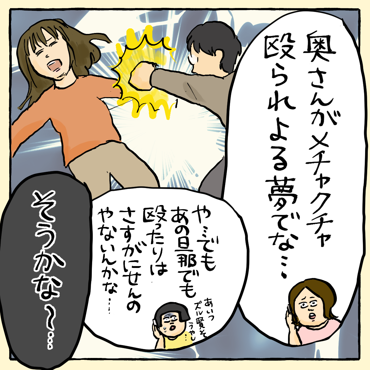 ええっ……。あの外面が良さげなダンナ、モラハラは三度のご飯よりもしてそうだけど暴力は逆にさすがにしないんじゃないかな?と、私は思ったんだけど………………。それからすぐ。